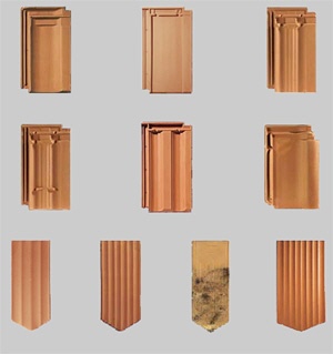 Einige Tonziegel - Modelle, in verschiedenen Farben erhältlich.